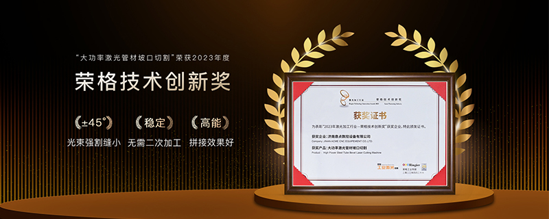 經過專業評審,嚴格評選,我司“大功率激光管材坡口切割”榮獲2023激光加工行業-榮格技術創新獎!