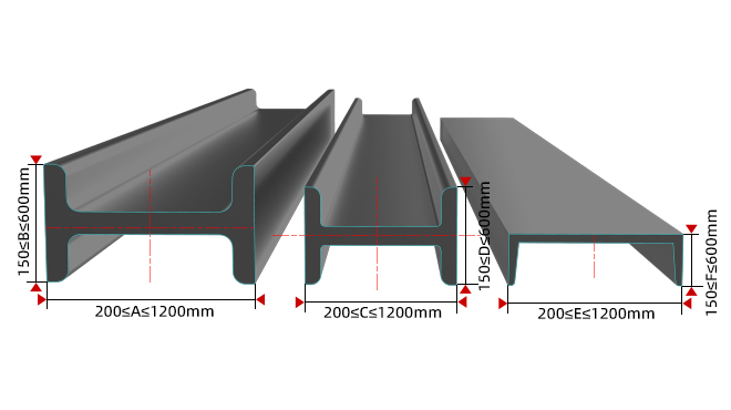 最大截面尺寸為1200×600mm 最小截面尺寸為300×300mm大型工字鋼