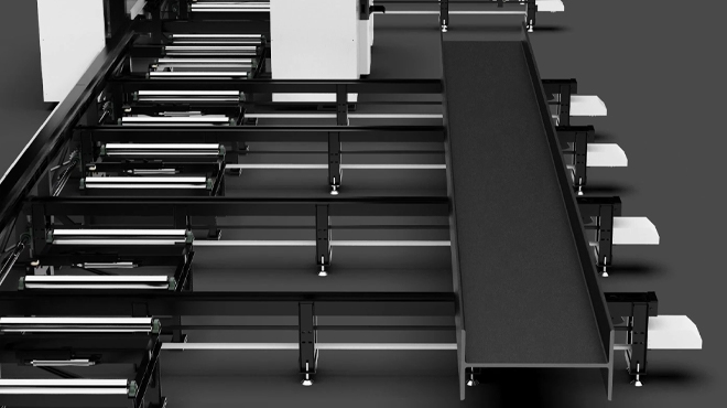 獨特的結構設計,支持原料的整根切割12米上 / 下料